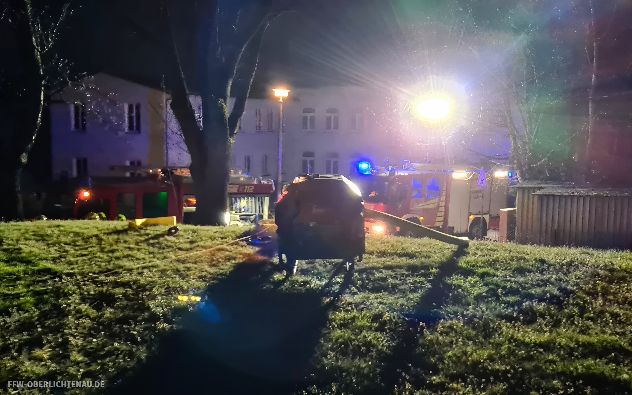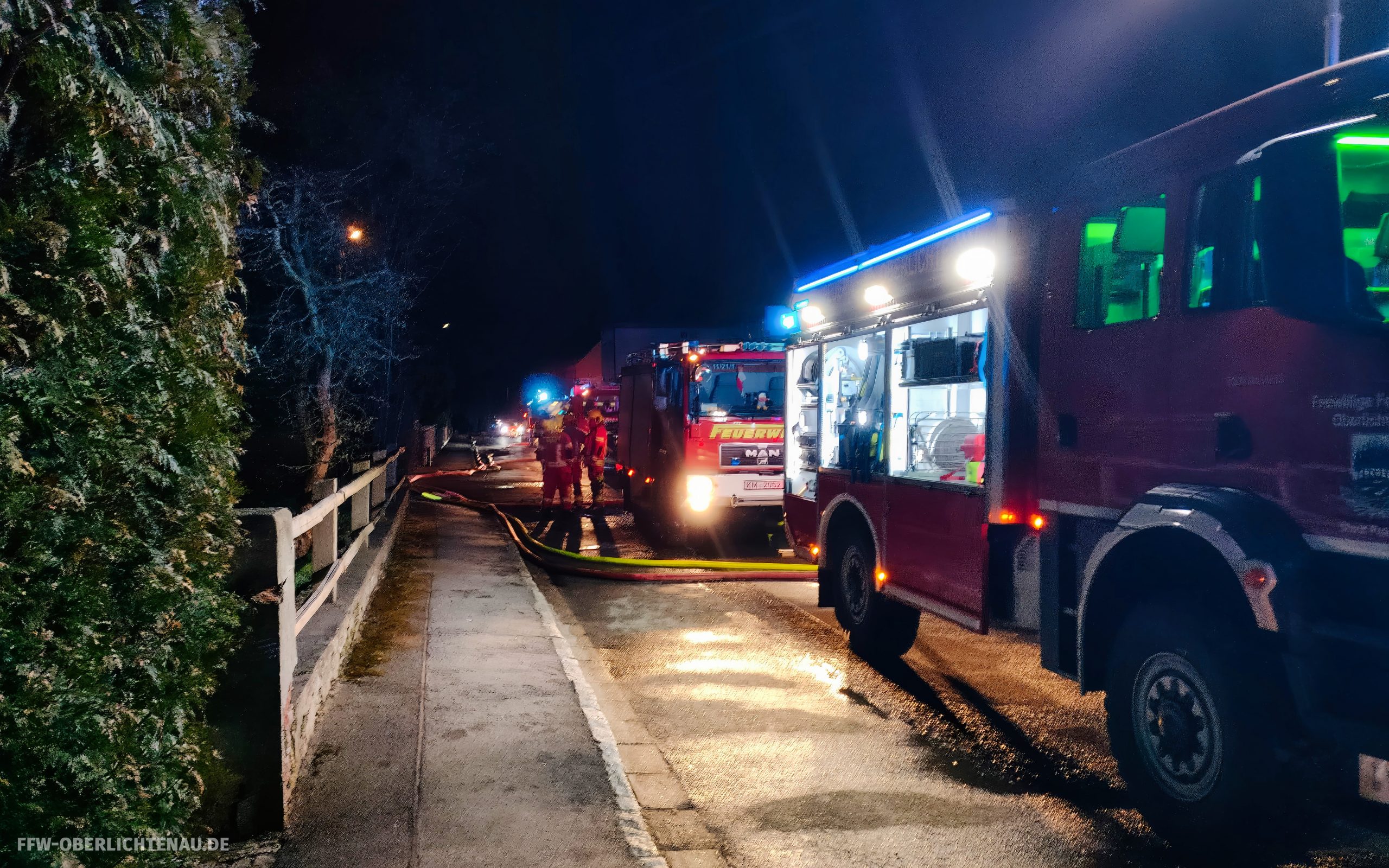 Kurz nach Mitternacht um 0.33 Uhr wurden wir nach Pulsnitz in die Heidrianstraße zum Brand eines Carports alarmiert. Beim Ankommen hatte der Brand bereits auf das Wohnhaus übergegriffen. Umgehend wurde das Stichwort auf Großbrand erhöht und ein massiver Löschangriff eingeleitet.