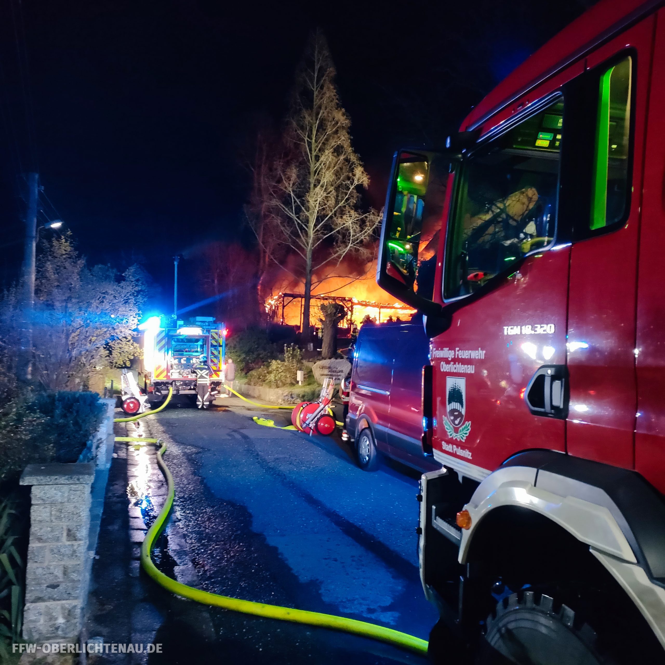 Der Brand wurde zügig eingedämmt, die Restablöschung zog sich dagegen länger hin. Im Morgengrauen konnten wir die Einsatzstelle nach 5 bzw. 6 Stunden verlassen.