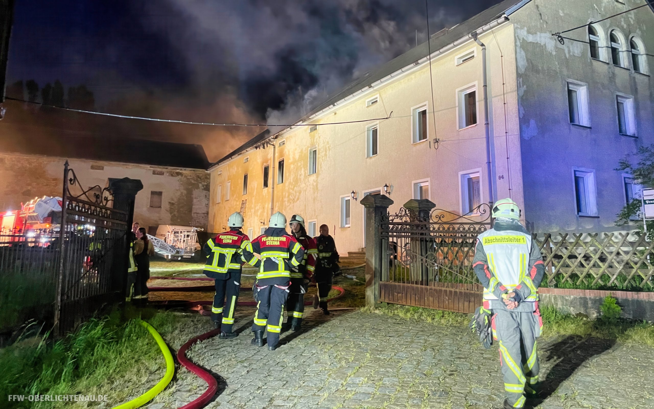 Durch die geographische Lage, die komplizierte Löschwasserversorgung und die schwere Erreichbarkeit des Brandherdes im Gebäude, wurde die Brandbekämpfung zu einer Herausforderung. Das bedeutete, dass die Brandbekämpfung der 2 Einsatzabschnitte unentwegt koordiniert und abgesprochen werden mussten. Es bedeutete auch, dass die Löschwasserversorgung über einen Pendelverkehr von Tanklöschfahrzeugen nach Oberlichtenau sichergestellt werden musste.