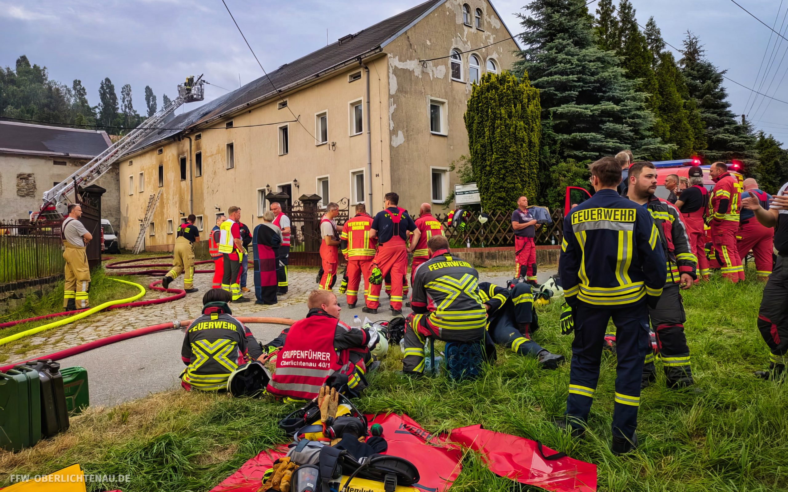 Als wir an der Einsatzstelle ankamen, waren bereits Kameraden aus Steina und Pulsnitz im Innenangriff. Wenig später wurde bereits die letzte Person aus dem Gebäude gebracht. Ein wenig Erleichterung machte sich sofort breit, als verkündet wurde, dass nun alle Personen aus dem Gebäude raus sind.