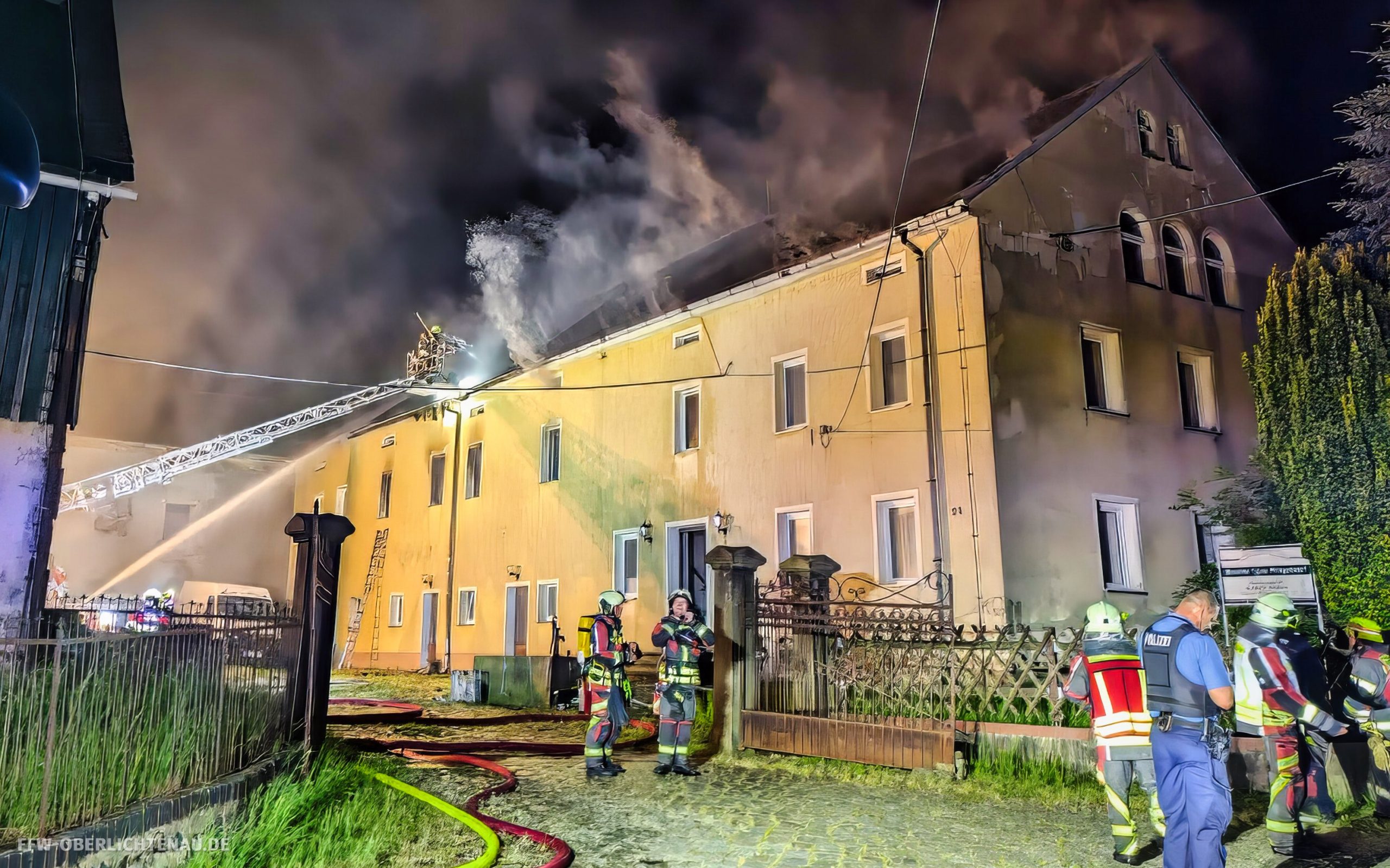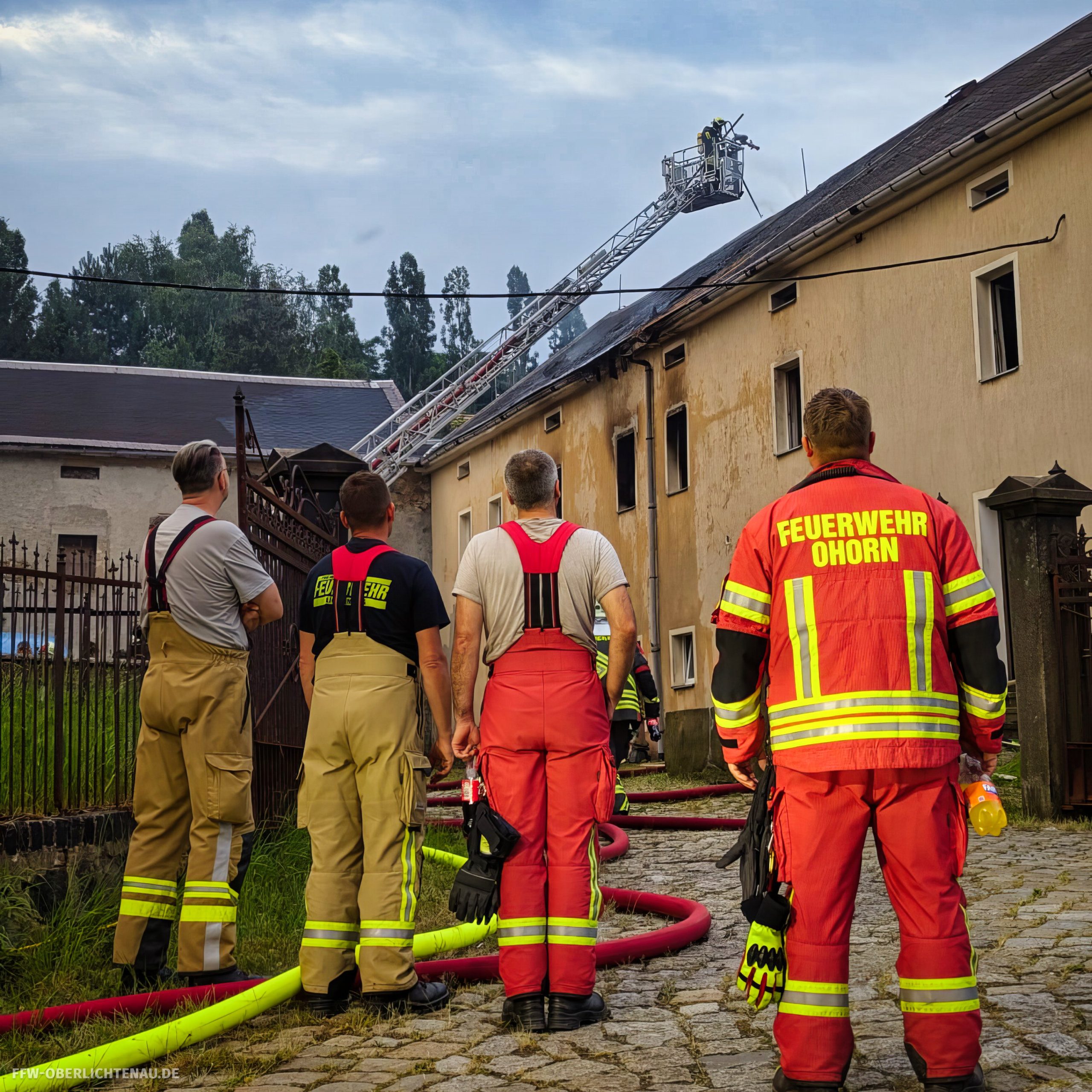 Nach ca. 7 Stunden und einem großen Schaumangriff im Dachgeschoss, konnte man ein „Feuer aus!“ melden. Dennoch war es allen beteiligten Einsatzkräften klar, dass man mit Sicherheit noch nicht jedes Glutnest erreicht hatte. Was zur Folge haben würde, dass eine engmaschige Nachkontrolle des Gebäudes erfolgen musste.