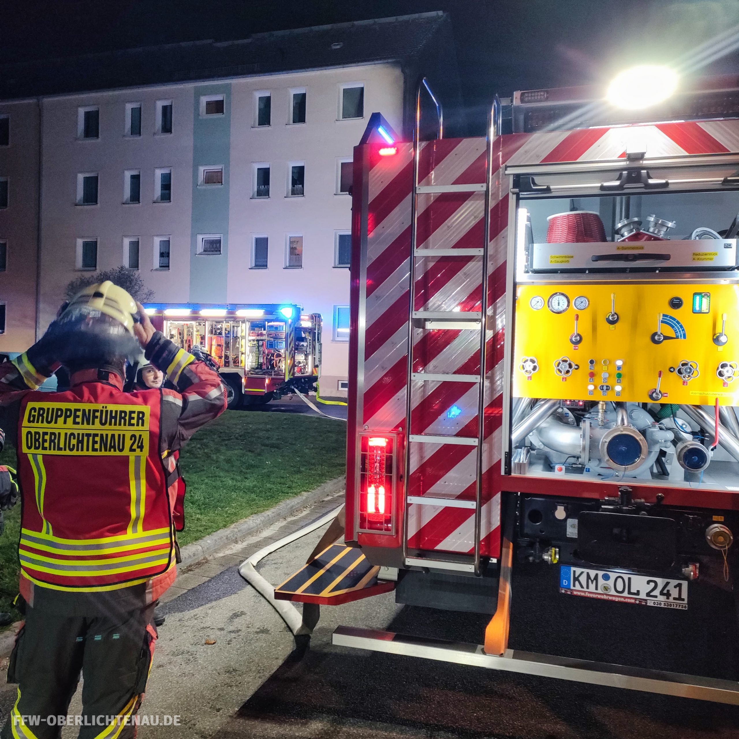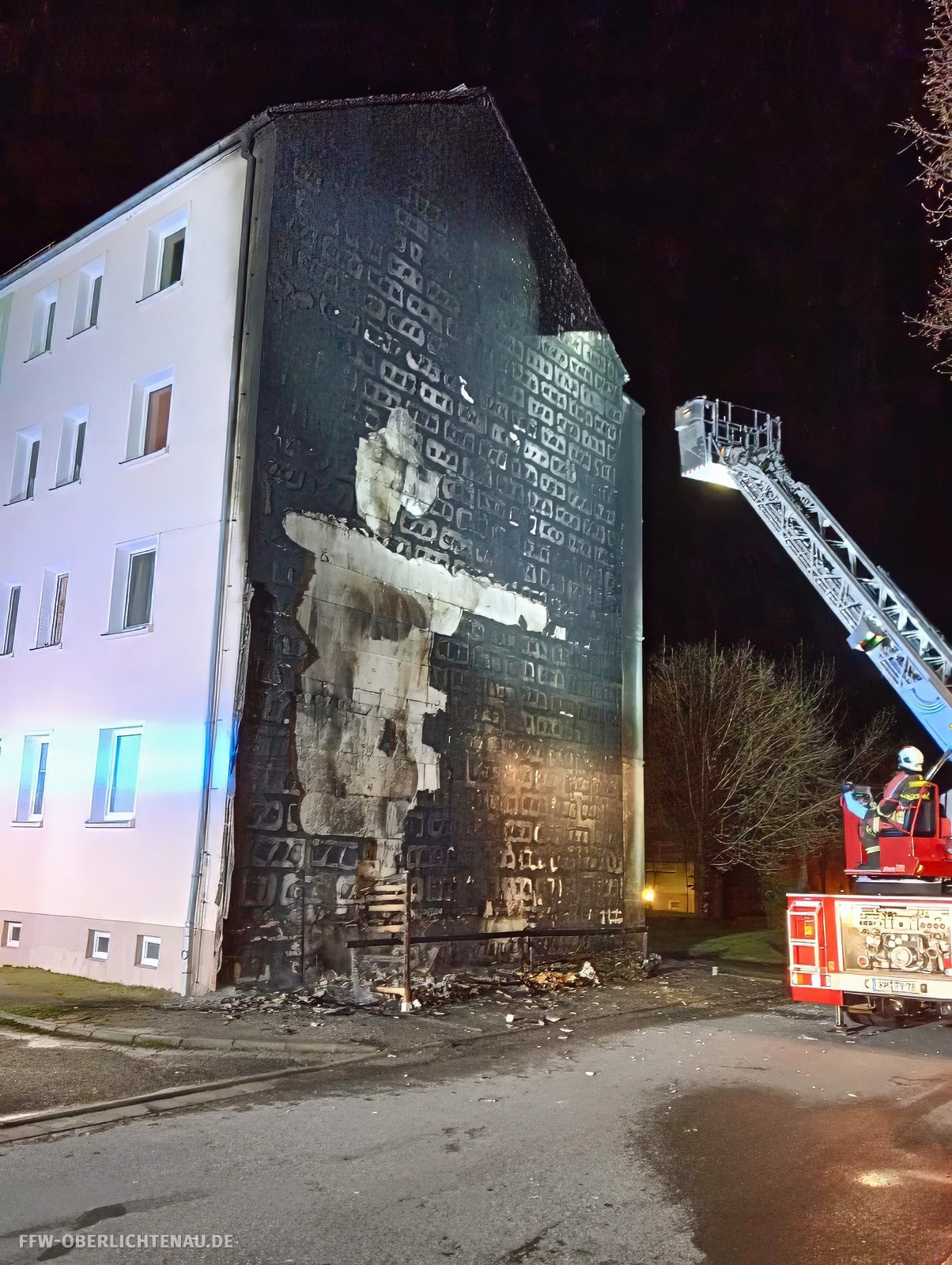 Letzte Nacht gegen 1.00 Uhr wurden die Kameraden der Feuerwehr Pulsnitz zu einem Mülltonnenbrand an die Weststraße alarmiert. Beim Eintreffen hatte der Brand bereits auf die gedämmte Fassade des Mehrfamilienhauses übergegriffen. Umgehend wurde die Alarmstufe erhöht und gegen 01.17 Uhr gingen, neben der Freiwillige Feuerwehr Lichtenberg und Feuerwehr Friedersdorf, auch unsere Pieper.