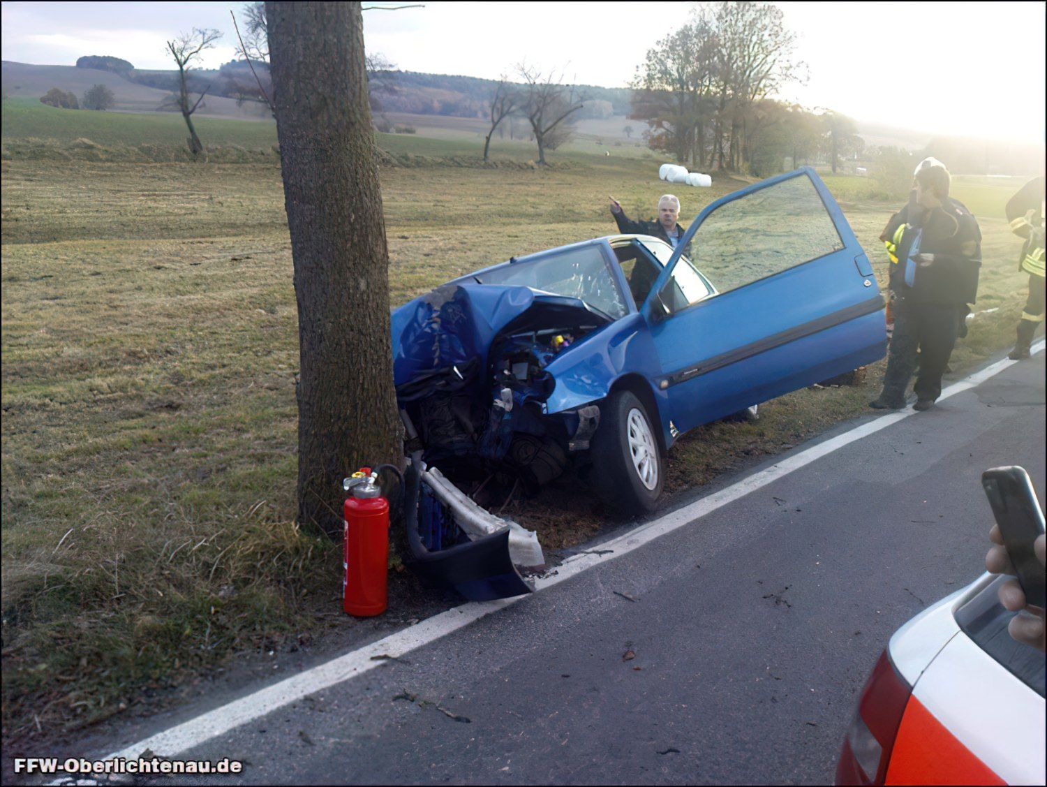 Am 3.11. um 14.46 Uhr wurden wir zu einem VKU/eingeklemmte Person auf die K5290 Richtung Großnaundorf alarmiert. Ein PKW war frontal gegen einen Baum gefahren. Bei unserem Eintreffen wurde der schwer verletzte Fahrer bereits durch die FF Großnaundorf gerettet und anschließend den Rettungsdienst übergeben. Wir sicherten die Unfallstelle mit ab und kehrten dann wie die ebenfalls alarmierten FF Pulsnitz zum Gerätehaus zurück.