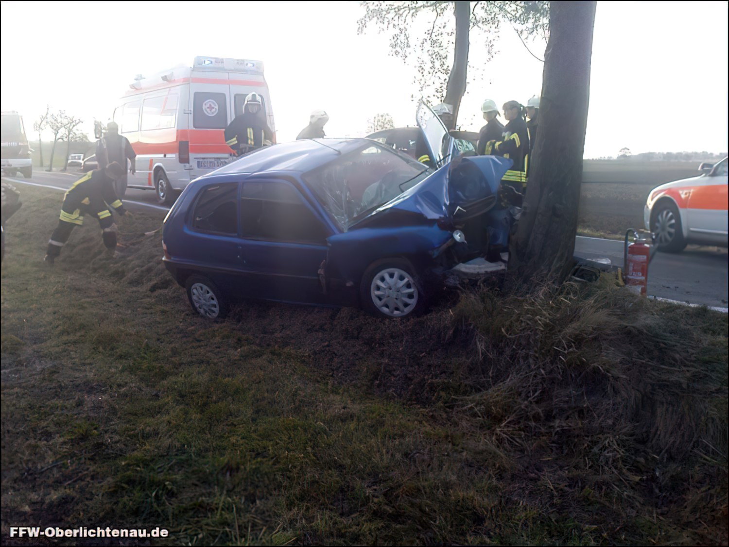 | Erläuterung: | PKW an Baum, eingeklemmte Person |