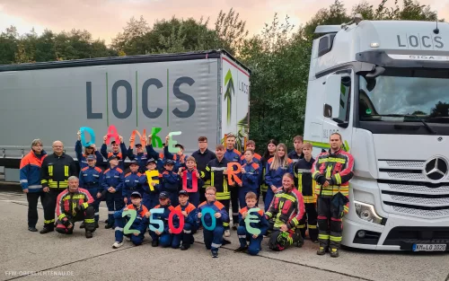 Das großartige an der Aktion war, dass der komplette Erlös an unsere beiden Jugendfeuerwehren gehen sollte. Aber das war Alexander Thieme, Geschäftsführer der Firma LOCS und seiner Schwester Sophie Haaser, Betriebsleiterin, noch nicht genug. Sie rundeten den Betrag auf satte 2.500 € auf!
