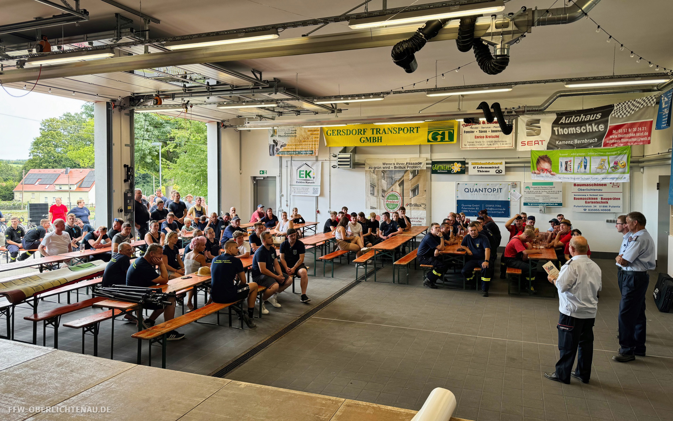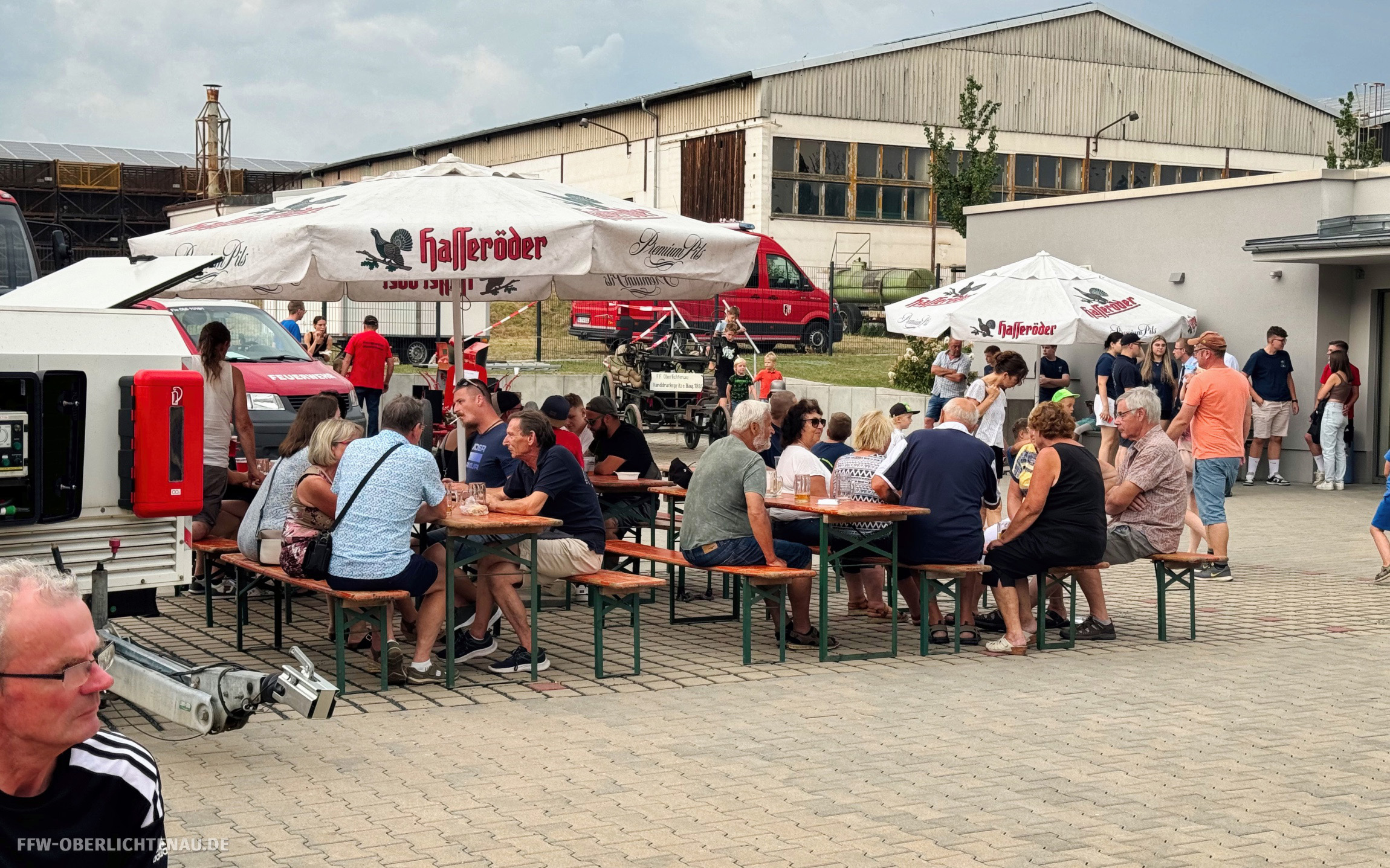 Bei bestem Sommerwetter öffneten wir bereits am Vormittag die Türen und Tore unseres Gerätehauses. Einige Gäste umliegender Wehren besuchten uns auch zu einem kleinen gemeinsamen Frühschoppen.