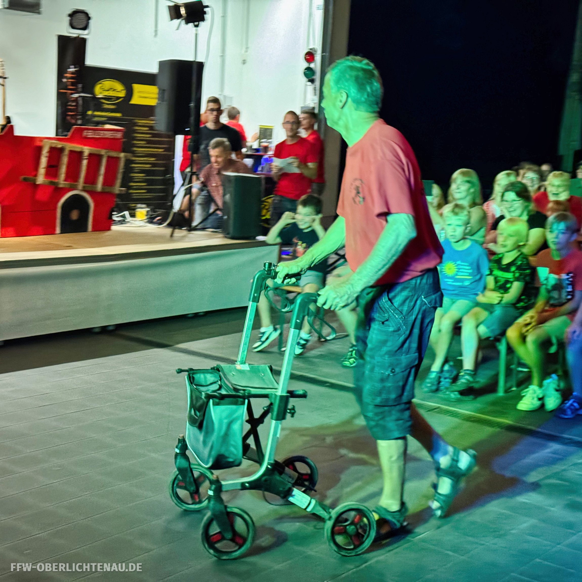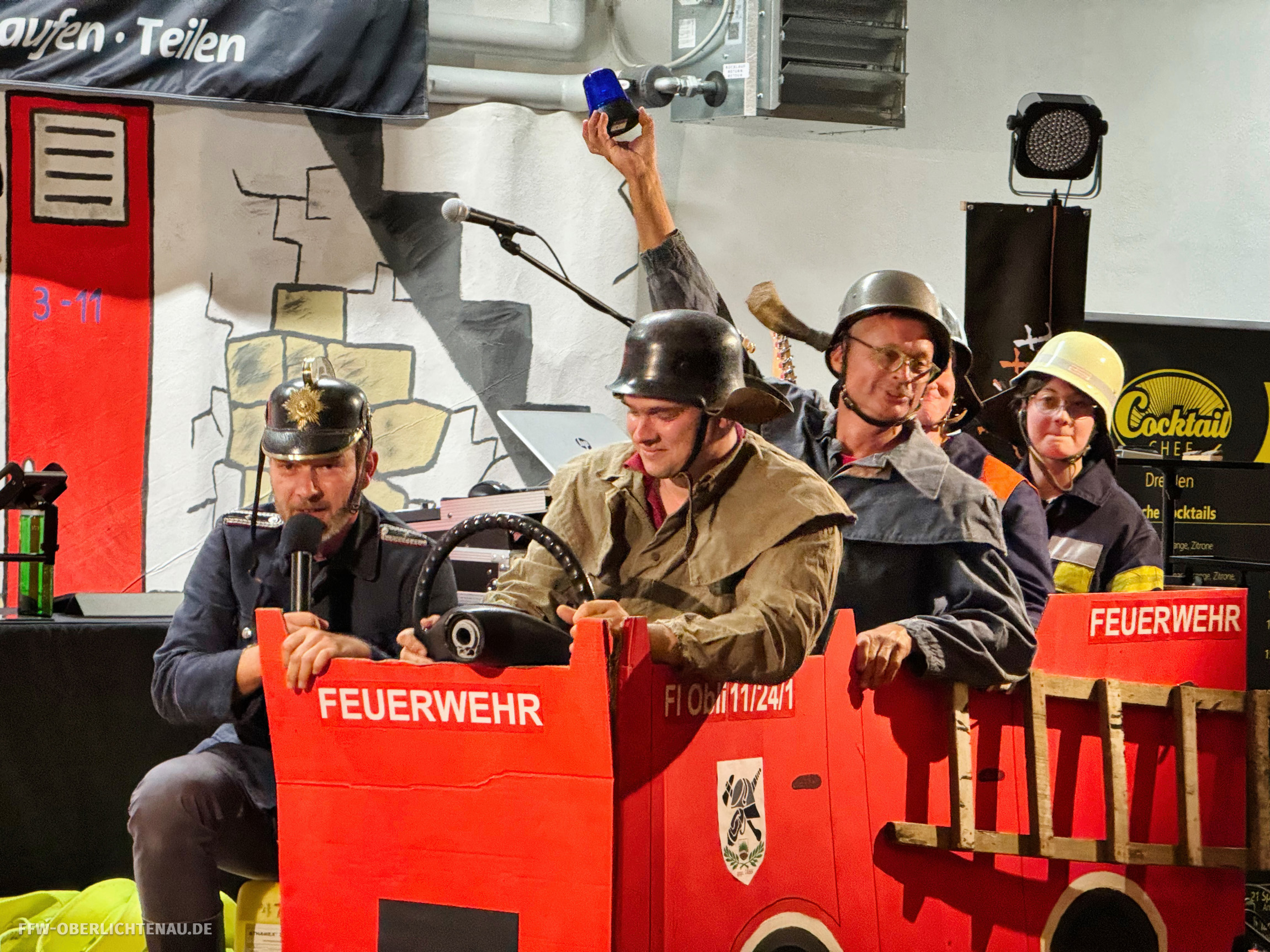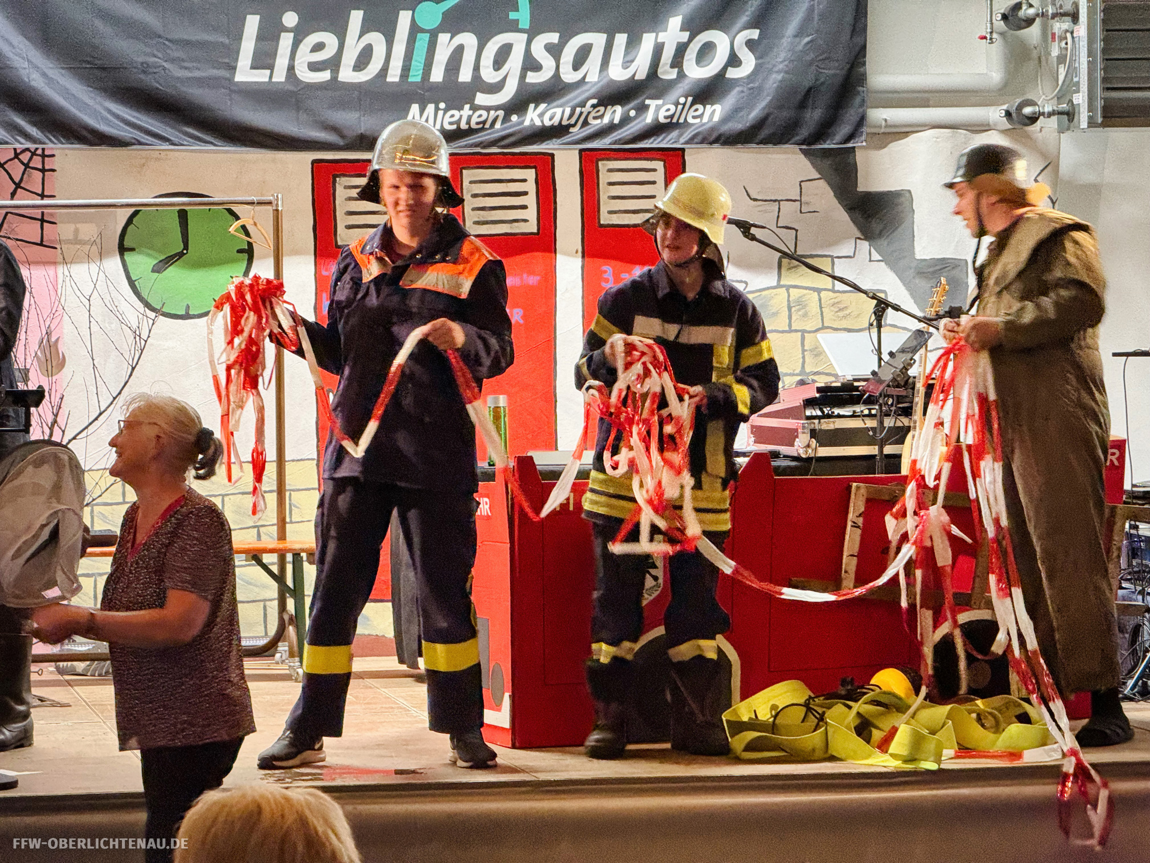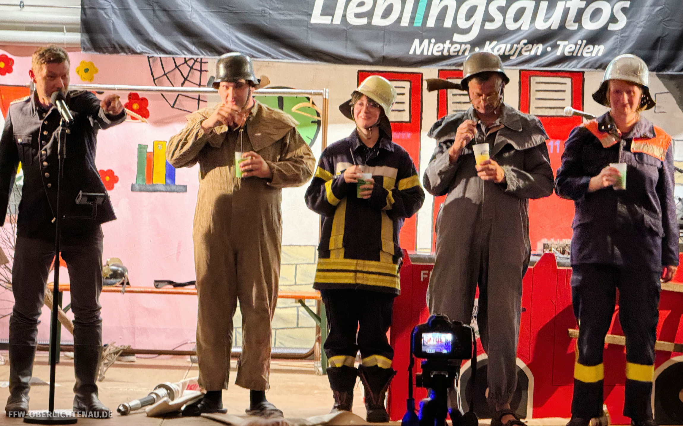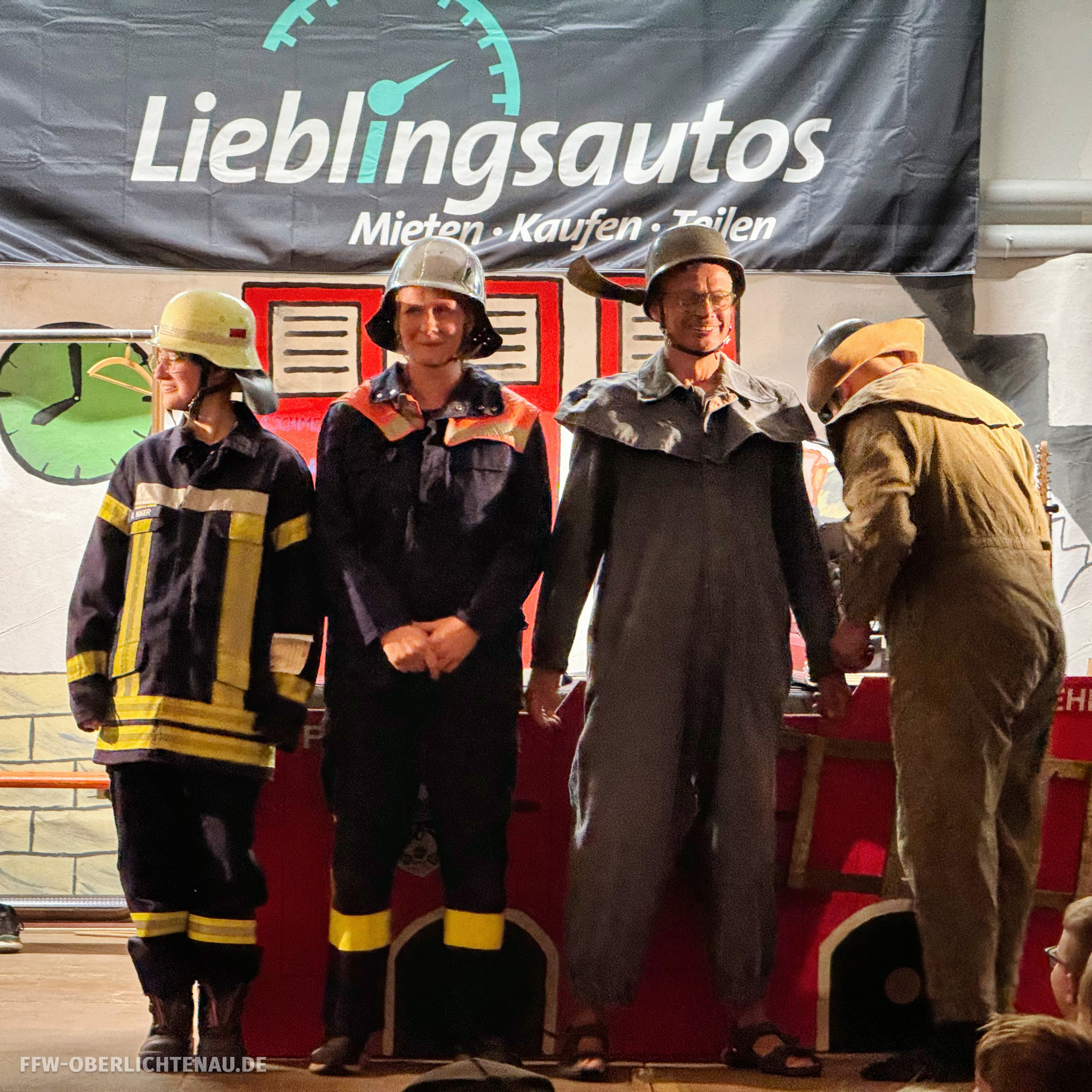 So ein Fest organisiert man natürlich nicht in 2 Wochen. Also wurde schon knapp ein Jahr vorher mit den ersten Planungen begonnen. In einer dieser Sitzungen fiel uns ein altes Stück Papier in die Hände, welches aufzeigte, dass die Freiwillige Feuerwehr vor Jahrzehnten mal Theaterstücke auf dem Saal unseres Lindengasthofs aufgeführt hatte. Und wenn nicht jetzt, wann dann könnte man so etwas wieder aufleben lassen? So wurde kurzentschlossen ein kleines Stück ersonnen und einstudiert.