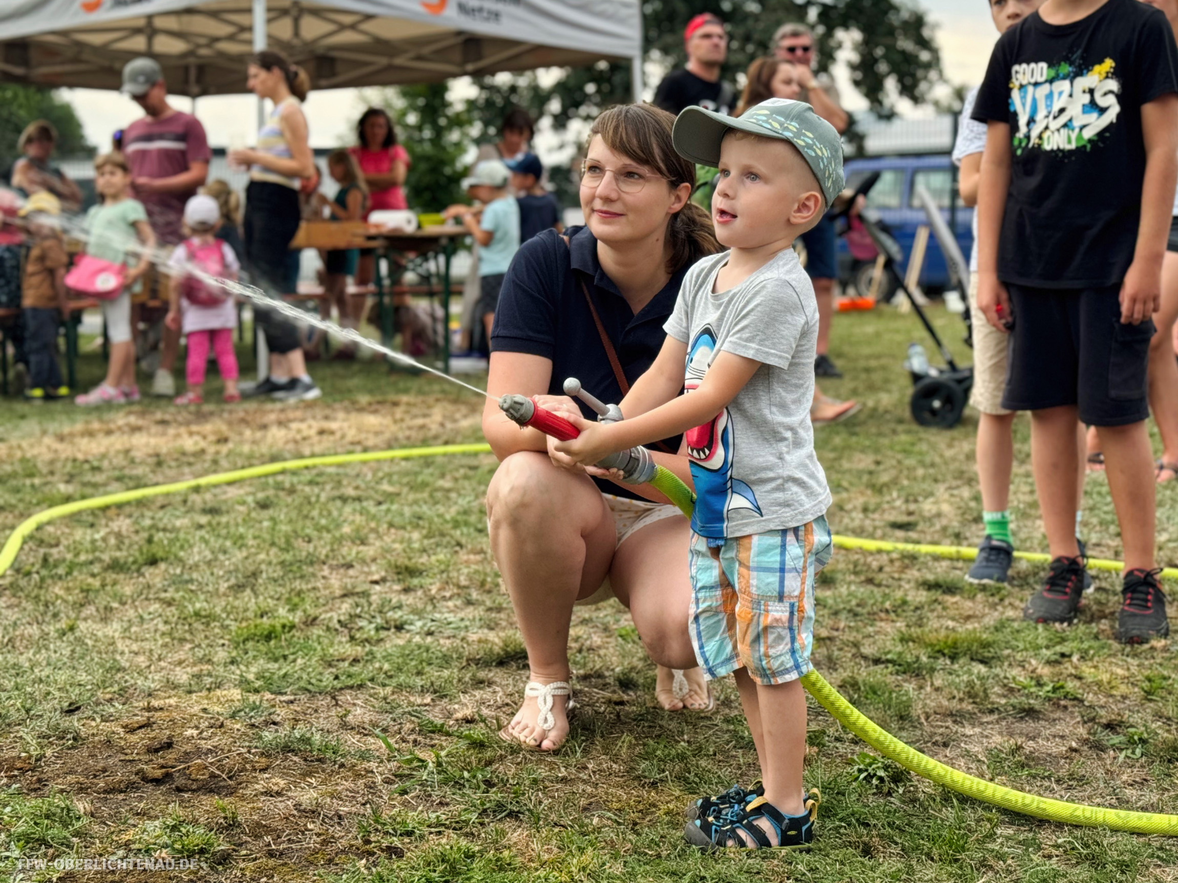 Nach dem Mittag füllte sich unser Gelände zusehends. Angelockt von einem Eisstand, einer Hüpfburg, dem Kaffeekonzert der Juniorband des SZO, der Aussicht der Kinder darauf auch mal selbst mit dem Strahlrohr spritzen zu können und natürlich unserer Feuerwehrtechnik strömten immer mehr Besucher zu uns.