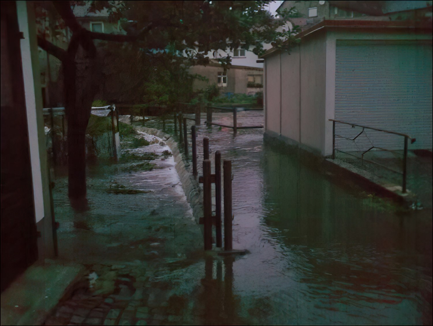 Wir arbeiteten dann eine Vielzahl von Einsätzen ab, wobei es sich immer um vollgelaufene Keller handelte. Zwischendurch beseitigten wir einen größeren Wassertank, der sich unter einem Überbau verfangen hatte und das Wasser zurückstaute.