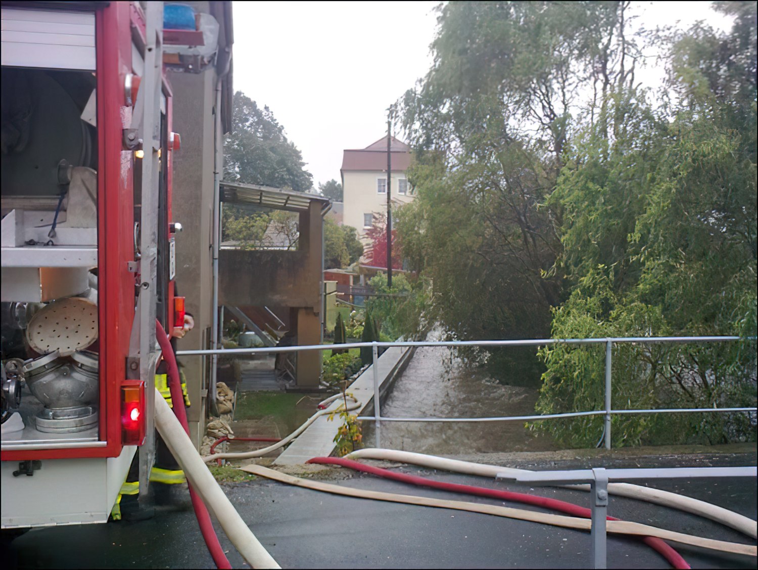 Gegen 22.30 Uhr verschärfte sich die Lage durch stärkeren Regen zusehens und die Einsatzleitung ließ die OW Friedersdorf, die in ihrem Bereich durch „Land unter“ nichts mehr tun konnte, nach Oberlichtenau zum Verteilen von Sandsäcken nachalarmieren. Sie sicherten ein Grundstück gegen Überflutung ab, ehe sie wieder nach Friedersdorf zurück mussten.