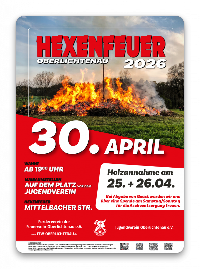 Auch in diesem Jahr laden wir euch wieder ganz herzlich zum traditionellen Hexen- und Maifeuer ein! Am 30. April starten wir um 19:00 Uhr mit dem Maibaumstellen am Jugendverein. Im Anschluss begleiten wir gemeinsam mit dem Spielmannszug den Fackelumzug zum Hexenfeuer auf der Mittelbacher Straße.